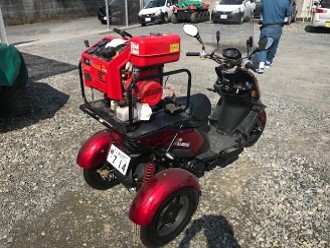トライク登録にて、荷台は200kg積載できるので、大型ポンプ搭載を検討する。
