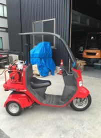 軽装なスタイルと50ccという車両に対し、搭載ポンプがD級という事で、消防本部の方々からは意外と厳し