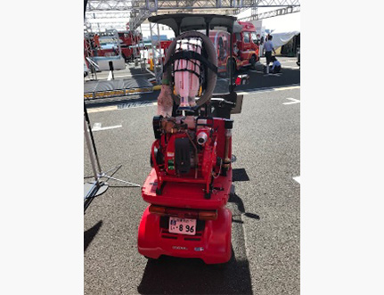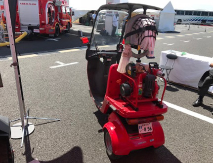 電動トライク(ラビット)に、消防ポンプD級を搭載して展示。