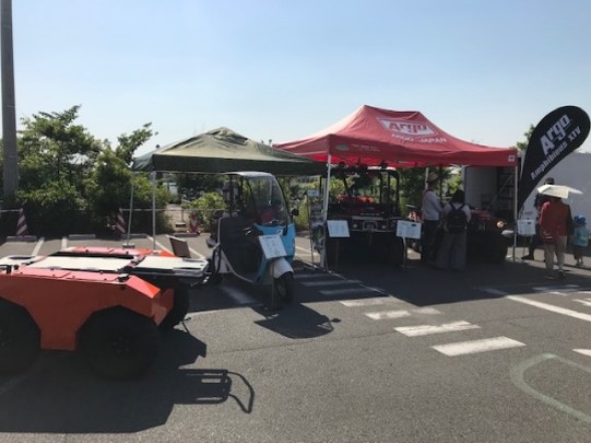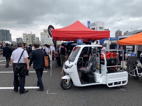 50ccジャイロと50cc相当の3輪バイクを貸与頂き、弊社にて架台等開発を実施し、展示を行った。