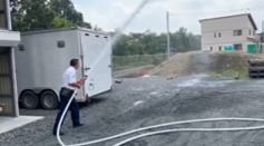 50ccジャイロに搭載したD級ポンプの固定変更や金具変更をした際の、本体への影響を確認する為の放水試験を実施。