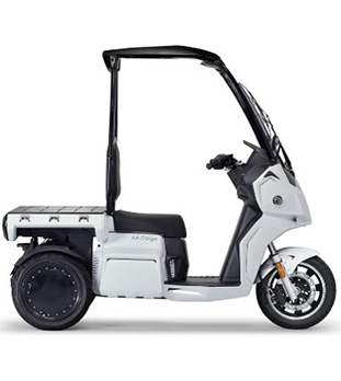 ガソリン車ではなく、電気を燃料としたEVトライクを使用する事を未来的見地から採用した。