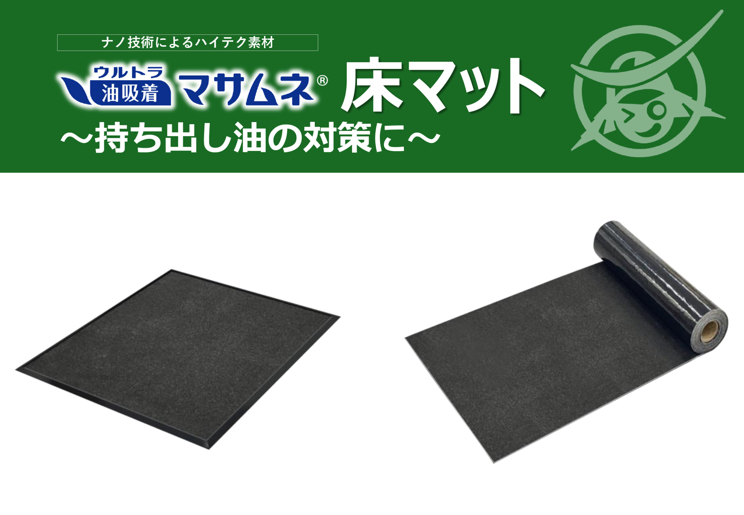 油吸着力、分散(同じ個所を踏んでも性能が持続)、床への油浸透を抑制を大幅に向上
